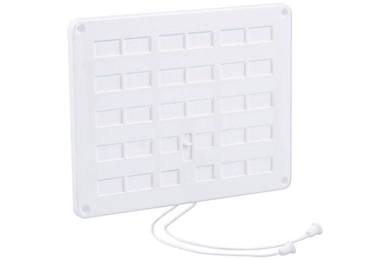 Afsluitb ventilatierooster 250x200mm wit 2084.2829 Afsluitbaar ventilatierooster met trekkoord Lees meer Bekijk andere uitvoeringen Direct offerte aanvragen Omschrijving Specificaties Specificaties Fabrikant Documenten Certificaten Videos Handleidingen Tekeningen Deeplink Extra informatie Afsluitbaar ventilatierooster met trekkoord Technische specificaties materiaal kunststof hoogte 200 mm uitvoering met trekkoord breedte 250 mm kleur wit kleur (basis) wit luchtdoorlaat 130 cm² Technische specificaties kleur wit afmeting 250x200 mm materiaal PS, kunststof doorlaat 130 cm² verpakkingseenheid per stuk Ga naar de website van de leverancier Deeplink DoP verklaring