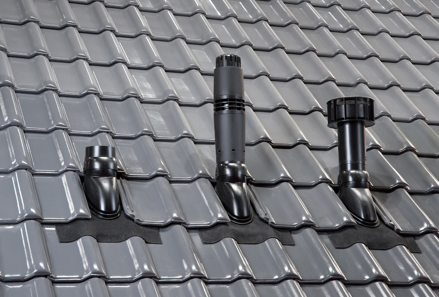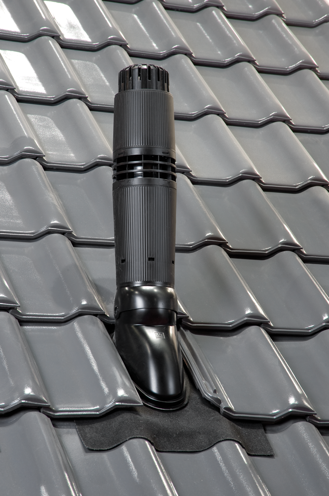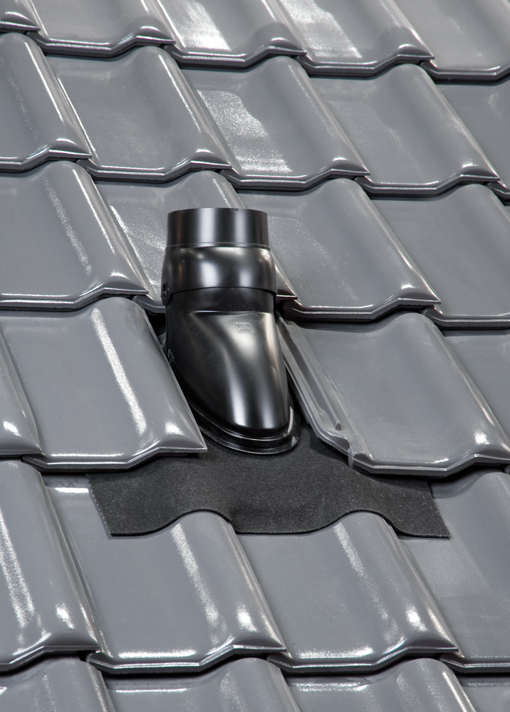 Universele dakdoorvoerpan, inclusief schaal, in de kleur zwart, met maximale buisdiameter van 131 mm en voorzien van Ubiflex loodvervanger. Deze dakdoorvoerpan is geschikt voor iedere gewenste dakhelling van 15 tot 55° en voor ieder type pan.