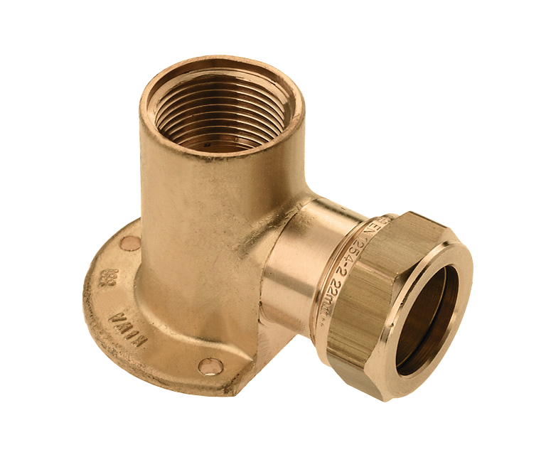 Messing & messing vertinde knelfittingen. Muurplaatkoppeling.
