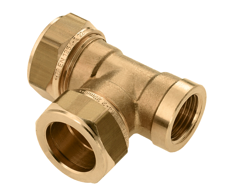 Messing & messing vertinde knelfittingen. T-koppeling.