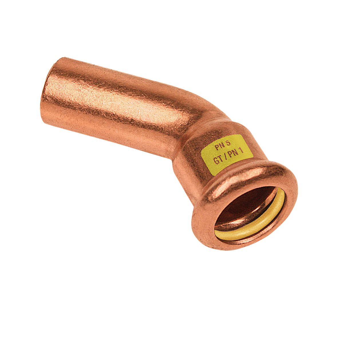 Pressfittingen roodkoper GAS. Insteekbocht 45°.
