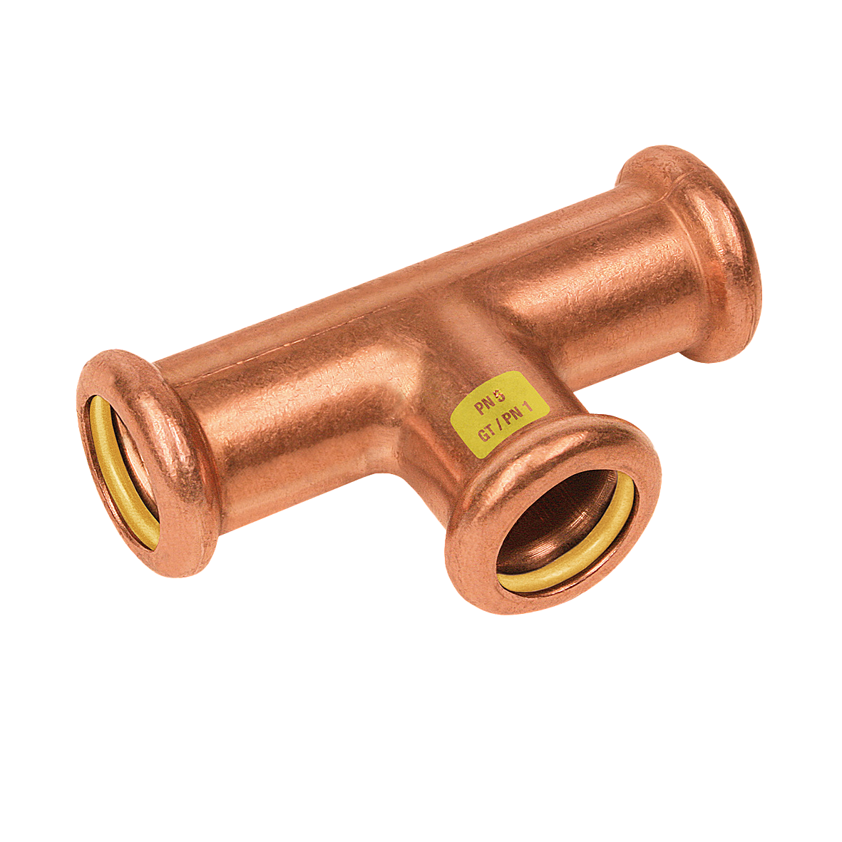 Pressfittingen roodkoper GAS. T-koppeling, verlopend.
