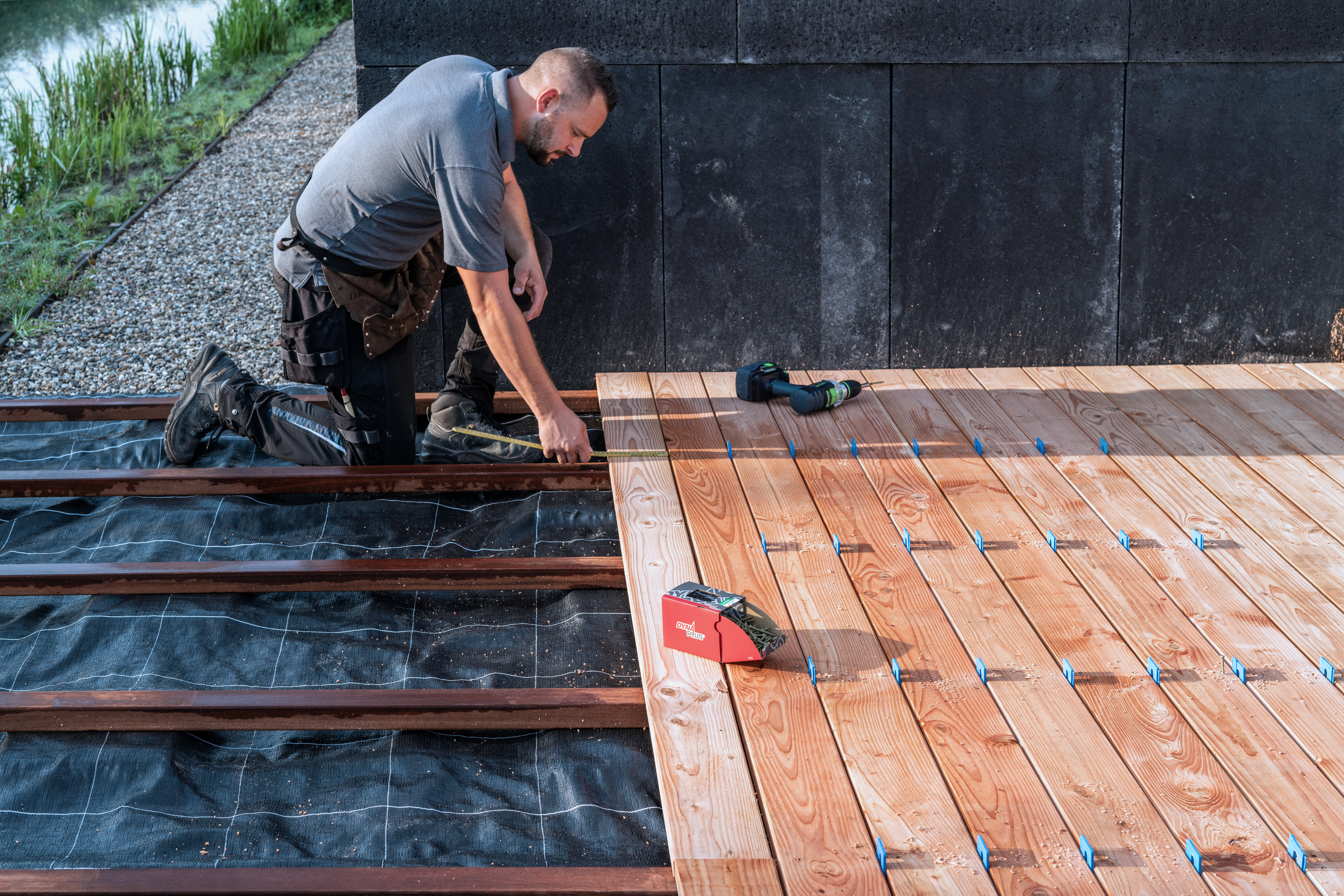 Dynaplus® vlonderschroeven met AR-coating zijn hét alternatief voor RVS vlonderschroeven. De gehard stalen vlonderschroeven met Anti-Roest-coating zijn twee(!) keer zo sterk als RVS vlonderschroeven, en daardoor de ideale schroef voor de montage van hardhouten vlonderplanken. Geen last van schroeven die afbreken tijdens het indraaien. Door de speciale boorpunt met cross-sections én snijvlak kun je deze schroeven in veel gevallen zonder voorboren verwerken. Maar voor het beste resultaat is het verstandig de vlonderplanken voor te boren met een verzinkboortje. De gecoate schroeven zijn zeer roestbestending en hebben de allerhoogste corrosiviteitsklasse; C4. De AR-coating is opgebouwd uit drie dunne laagjes organische coating bovenop de elektrolytische zinklaag wat zorgt voor een zeer goede hechting. Mocht de coating toch licht beschadigd raken bij het inschroeven? Geen probleem; de coating kan kleine beschadigingen zelf herstellen waardoor de AR-coating een permanente corrosiebescherming biedt aan de schroef. De scherpe freesribben onder de extra kleine kop zorgt voor een strakke afwerking van de vlonder. De extra grote en diepe TX-drive zorgt voor een optimale krachtoverbrenging van de bit op de schroef en maakt het inschroeven eenvoudig. Voor een gebruiksvriendelijke en duurzame montage van houten vlonderplanken hebben wij speciale rubberen T-stukjes en vlonderpads in het assortiment.