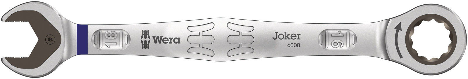 Hoogwaardige, metrische ringratel-steeksleutels van Wera: Alles wat een sleutel moet kunnen. En nog veel meer. Sneller, beter, mooier. Kortom: een echte Joker. De nieuwe generatie steek-ringratelsleutels. Voor zeskantschroeven en -moeren. Met vasthoudfunctie via metalen plaat in bek om schroeven en moeren niet te verliezen. De verwisselbare metalen plaat in de bek houdt met extra harde tanden schroeven en moeren vast en verkleint het risico op wegglijden. De geïntegreerde eindaanslag voorkomt het wegglijden naar beneden van de schroefkop en maakt hoge draaimomenten mogelijk. De intelligente dubbele zeskant-geometrie zorgt voor een sluitende verbinding met schroef of moer en vermindert zo het risico op wegglijden. Dankzij de terughaalhoek van slechts 30° behoort het tijdrovende omkeren van de sleutel tijdens het schroeven tot het verleden. Ratelmechanisme aan de ringzijde met uiterst fijne vertanding (80 tanden) voor flexibiliteit, ook op plekken waar weinig plaats is. De speciale smeedvorm maakt de overbrenging van hoge draaimomenten mogelijk en geeft het geheel een hoge buigstijfheid. Gemaakt van sterk chroom-molybdeen staal met nikkel-chroom coating voor een hoge bescherming tegen corrosie. Met "Take it easy toolfinder": Kleurcodering op maat.