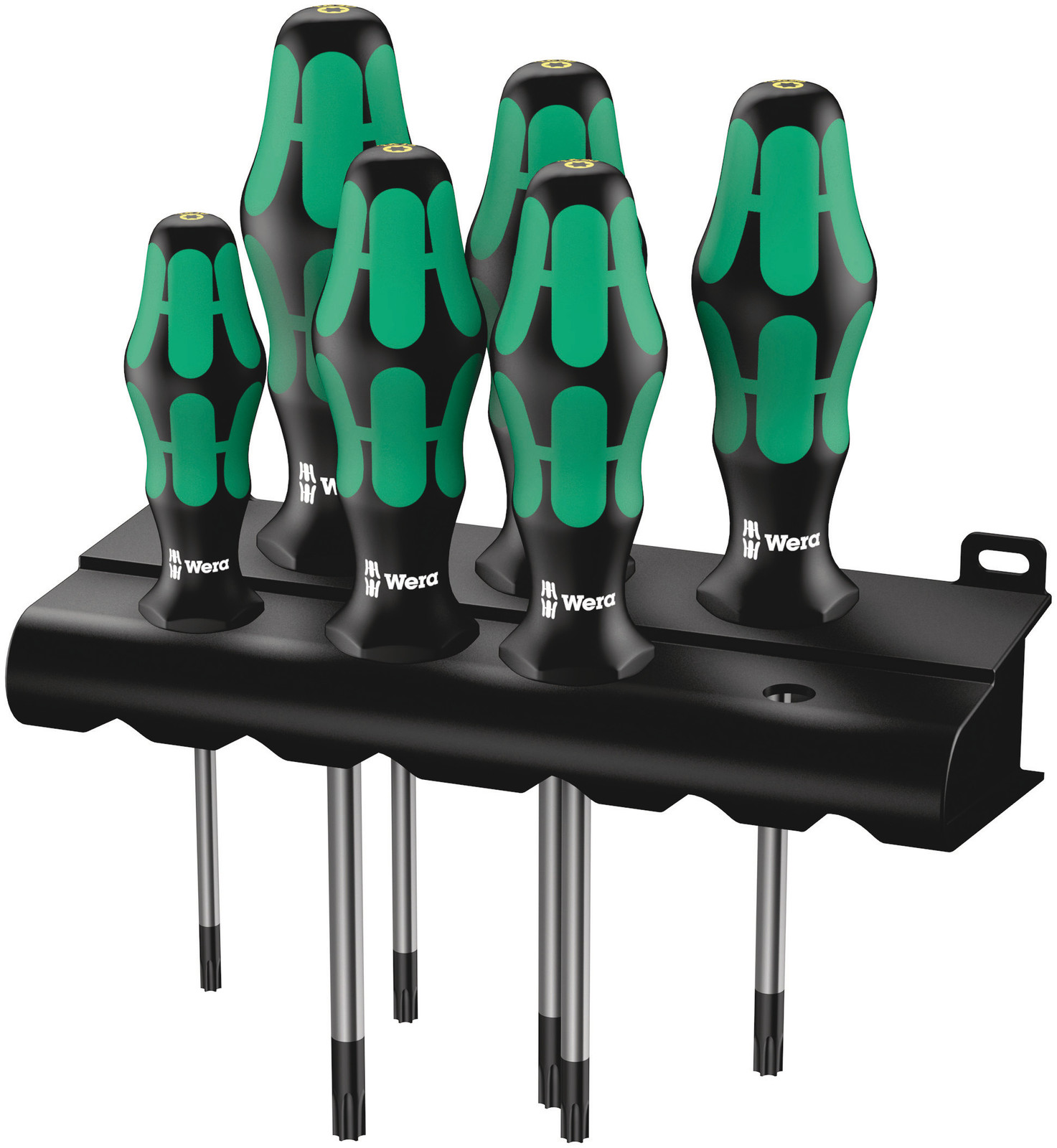 6-delige schroevendraaierset met Kraftform-handgreep om prettig en ergonomisch verantwoord te kunnen werken en blaren en schuurplekken te voorkomen. TORX® BO schroeven hebben een schroefprofiel met uitstekende lip. Om ongeoorloofd losdraaien te voorkomen, kunnen deze schroeven niet met normaal in de handel verkrijgbaar TORX® gereedschap bediend worden. Alleen speciaal TORX® BO gereedschap is voorzien van een boring waarin de lip valt. De Wera Black Point-punt en een uitgebreide harding garanderen een lange gebruiksduur van de stift, extra bescherming tegen corrosie en hoge pasnauwkeurigheid. Zeskantige wegrolbescherming verhindert telkens wegrollen op de werkplek. Met greepcodering om het gereedschap sneller te kunnen vinden en sorteren. Wordt geleverd met handig rack waarin de schroevendraaiers overzichtelijk kunnen worden opgeborgen.